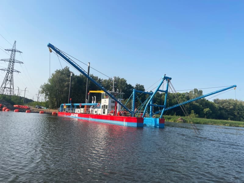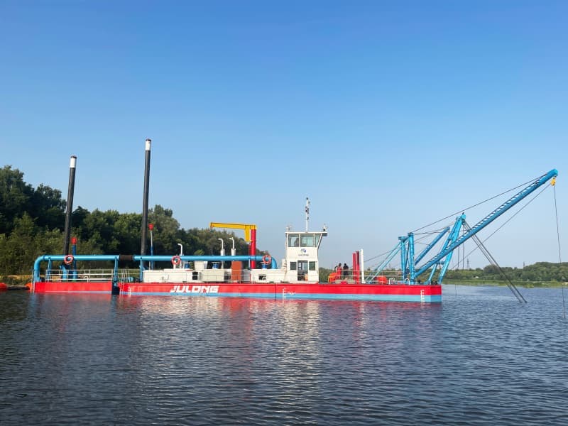 La drague JuLong, d'une capacité de pompage de 0 à 2500 m³/h, d'une profondeur de dragage de 10 m et d'une distance de refoulement de 0 à 2 km, est livrée démontée sur des pontons pour le transport par camion. Cette drague de taille moyenne est très populaire en Russie pour le dragage des rivières et des lacs.