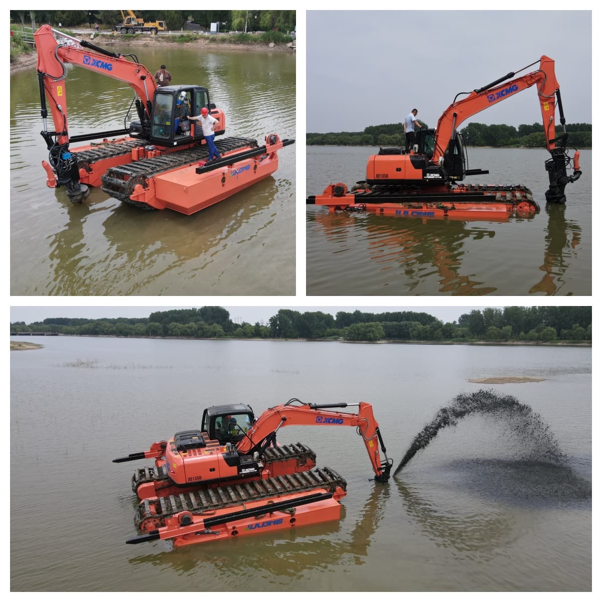JuLong Excavatrices amphibies Les pelles amphibies JuLong sont polyvalentes et peuvent être utilisées sur terre, en eaux peu profondes, en marais et en eaux profondes. Après des années d'essais pratiques, elles ont acquis la confiance de la majorité des utilisateurs. La partie supérieure de la pelle permet de choisir la marque et le type d'engin dont vous avez besoin. Différents types de caissons de flottaison ont été conçus et sont largement utilisés. Ils s'adaptent aux pelles de 5 à 40 tonnes et peuvent être personnalisés selon vos conditions et exigences de travail, conformément à votre plan spécifique.